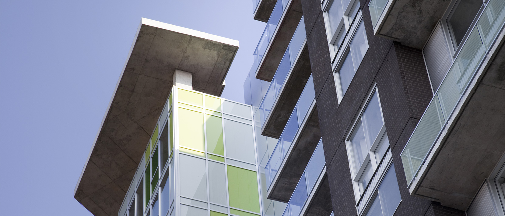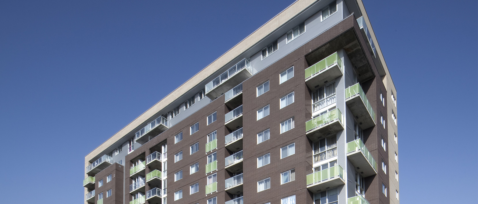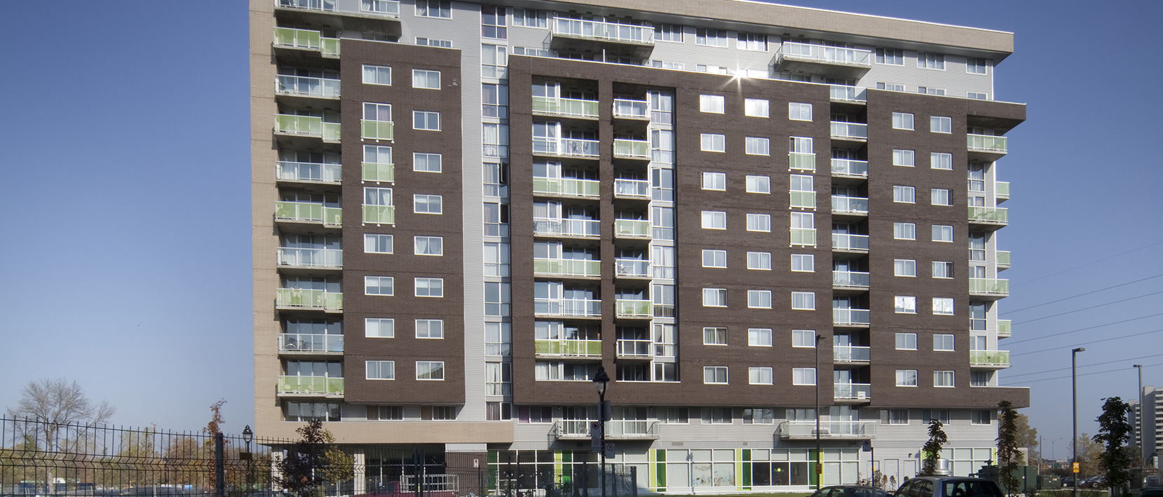 Phase 2 of Cité l’Acadie comprises 237 condominiums – 192 were Accès Condos accredited – ranging from one-bedroom to three-bedroom units. The sixteen-storey building, whose construction was completed in 2012, is located on Place de l’Acadie, in the immediate vicinity of Highway 15 in the Ahuntsic-Cartierville borough. With the construction of Phase 1 a year before, Cité l’Acadie now encompasses 423 Accès Condos accredited dwellings.