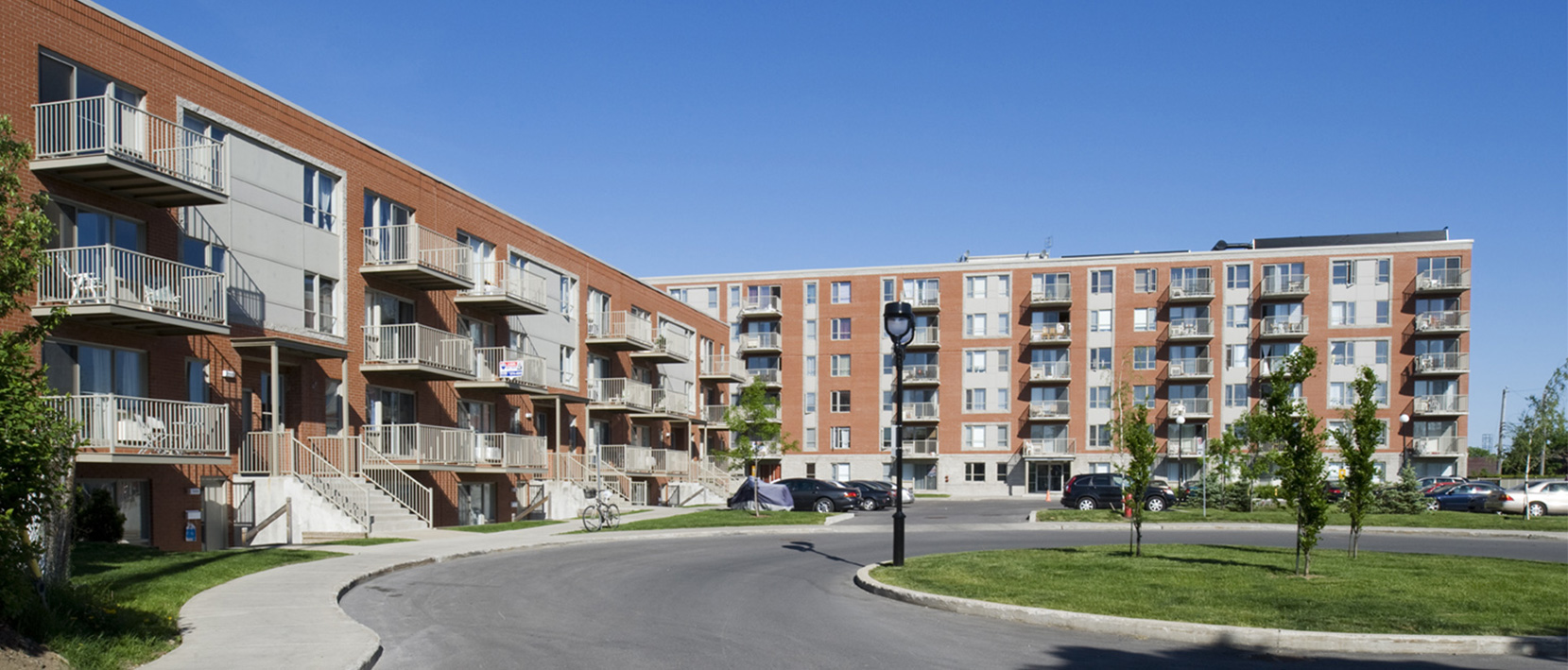 The Jardins Saint-Léonard project encompassed 107 condominiums ranging from studios to three-bedroom units. Composed of two buildings of four and six storeys, it is located on 27e Avenue, north of Bélanger Street in the borough of Saint-Léonard, close to the north-east limit of Rosemont-La Petite-Patrie borough. Completed in 2006, it was the second project to be accredited under the Accès Condos program, which was launched in 2005 by the SHDM.