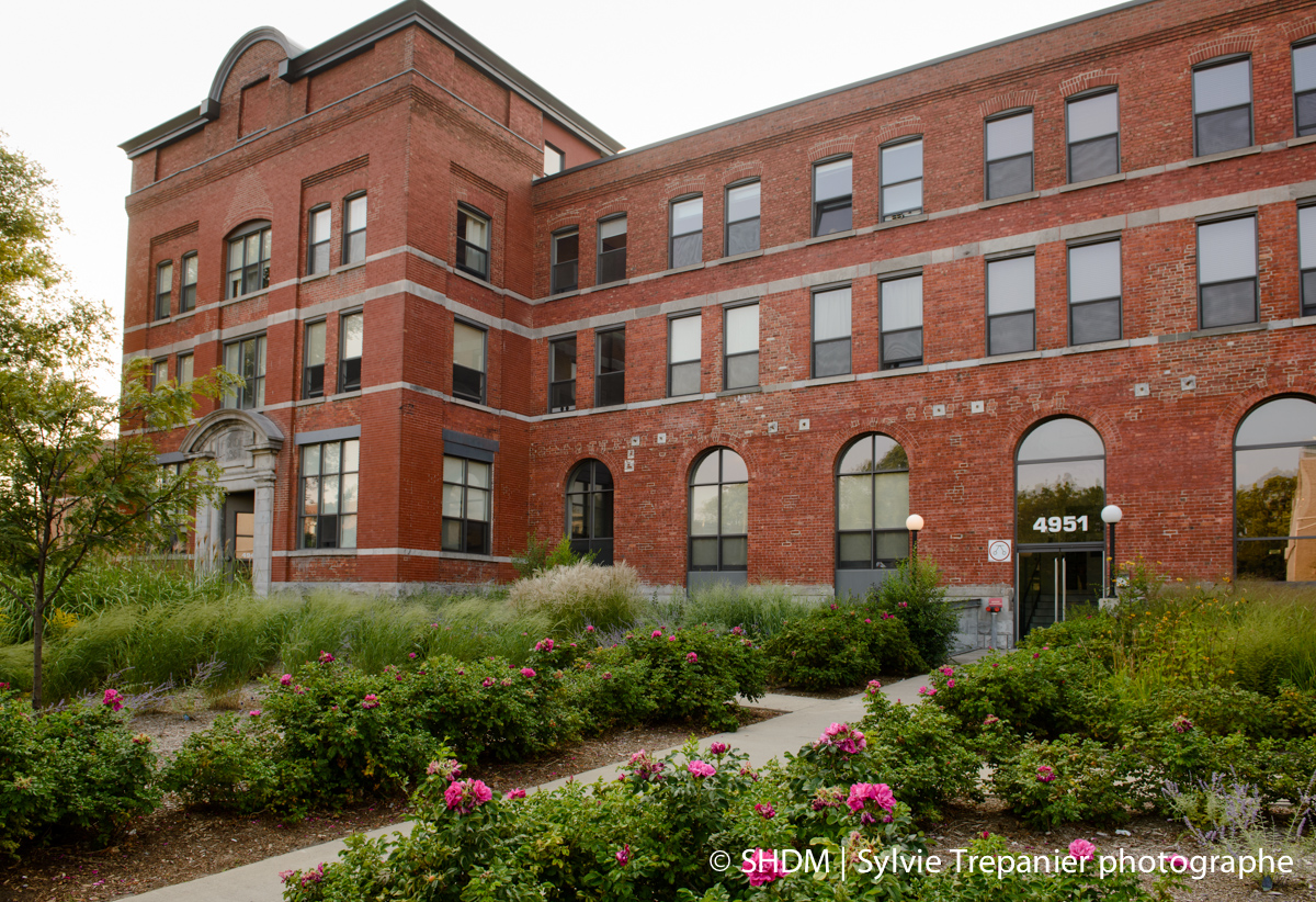 A project encompassing 182 condos, La Biscuiterie was designed for families with 79% of the units featuring two and three bedrooms. La Biscuiterie, whose repurposing was completed in 2007, is located at the corner of Viau and Ontario East in the Mercier–Hochelaga-Maisonneuve borough. This accredited Accès Condos project is a great example of the rehabilitation of former industrial spaces.