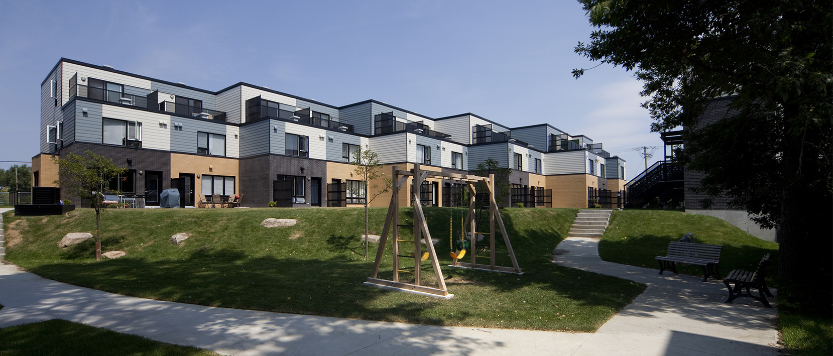 The Le Via3 numbers 42 condominiums, apartments on one or two levels and townhouse-style units built on three levels. They are divided up in three buildings of three or four storeys. The development mainly targeted families with 43% of the units having three or four bedrooms. Completed in 2013, Le Via3 is located in the north-east sector of Lachine borough.