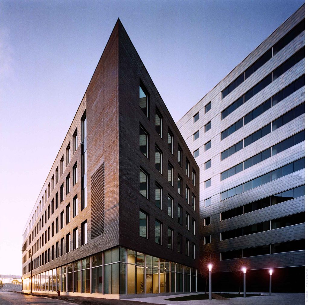 Located at 801 rues Brennan, in the Ville-Marie borough, the Louis-Charland building, which a LEED-CI certification, is a property of the Brennan-Duke Limited Partnership, a subsidiary of the Société d’habitation et de développement de Montréal (SHDM). This building, designed by MENKES SHOONER DAGENAIS LETOURNEUX Architectes, houses one of the administrative centers of Ville de Montréal. Its interior design was realized by Provencher_Roy.