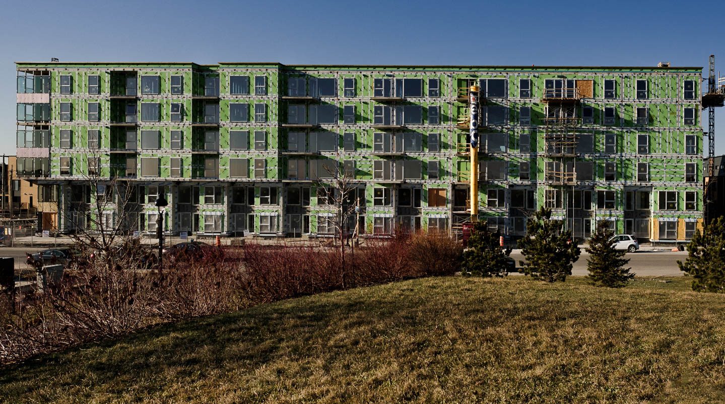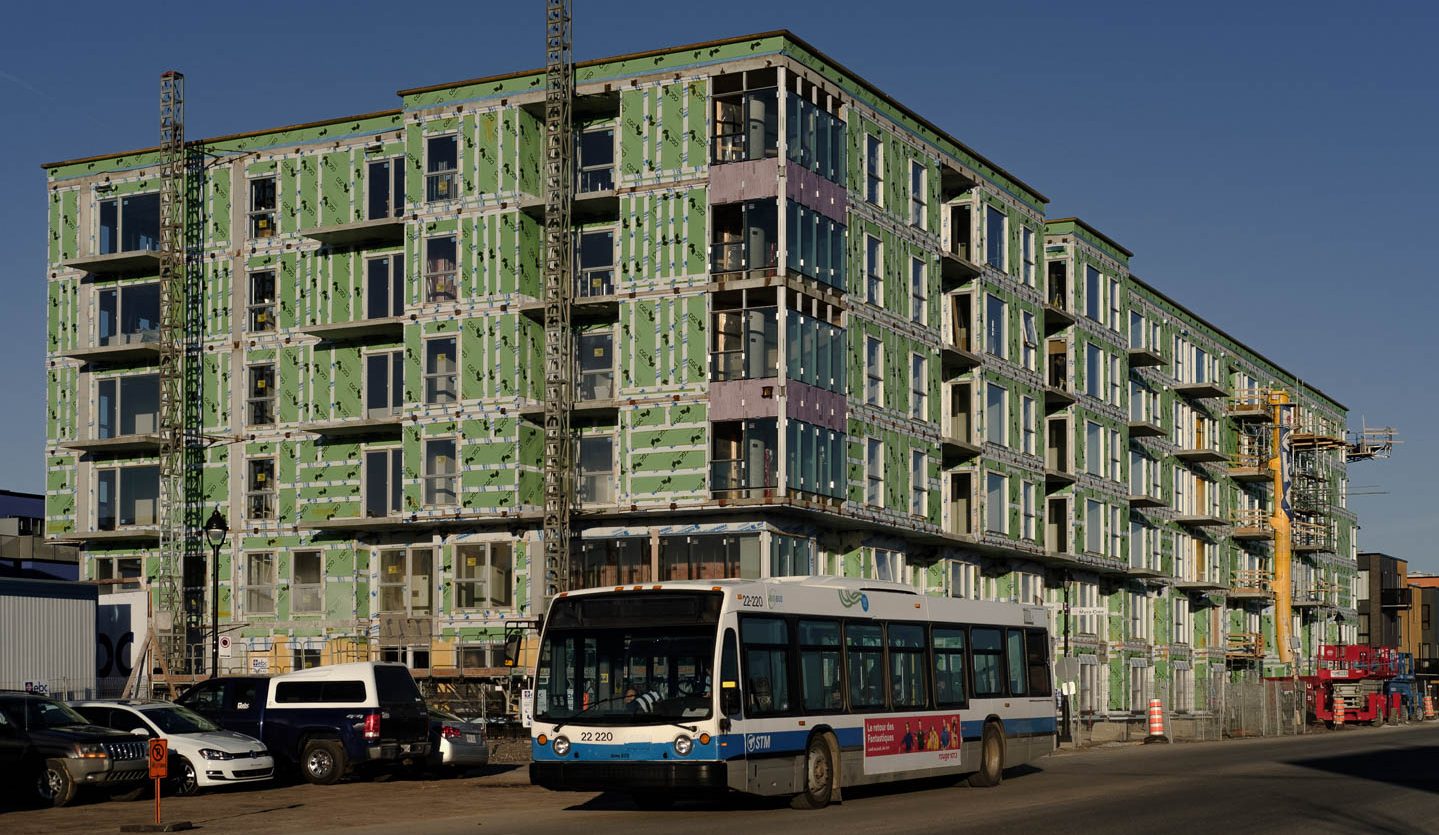Ce projet, dont la construction a été complétée en 2018, compte 95 unités de copropriétés abordables comportant une à cinq chambres. On compte 52 unités de deux chambres, 22 de trois chambres, 18 d’une chambre, deux de quatre chambres et une de cinq chambres. Le projet dans son ensemble comporte six étages avec deux ascenseurs. Sa facture contemporaine s’intègre harmonieusement au cadre bâti environnant grâce à un jeu de volumétrie subtil. Le contraste des couleurs de la maçonnerie apporte quant à lui du caractère au projet. Les fenêtres pleine hauteur offrent une luminosité exceptionnelle dans chacune des unités et plusieurs profitent d’une vue sur le parc Carlos D’Alcantara, situé juste en face du projet. Ce projet constitue l’avant-dernière phase accréditée Accès Condos dans le projet d’ensemble du Faubourg Contrecoeur.